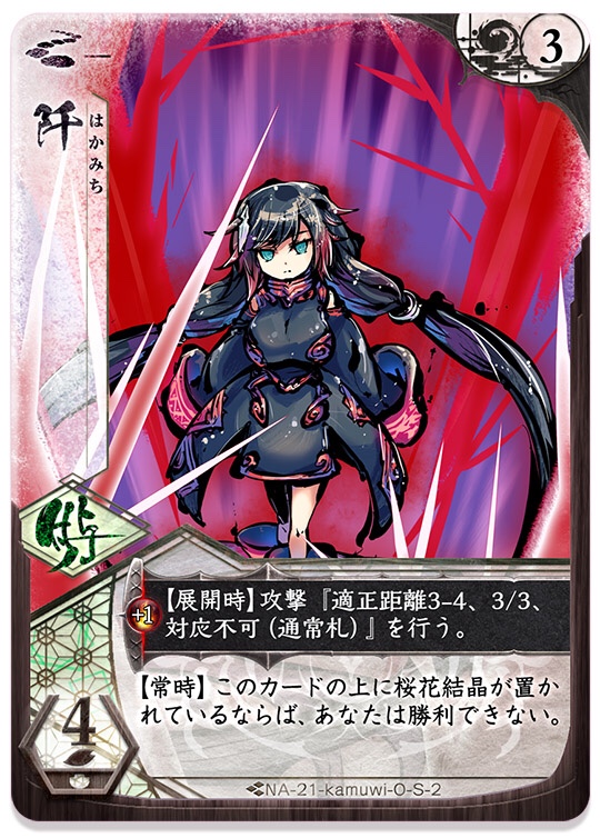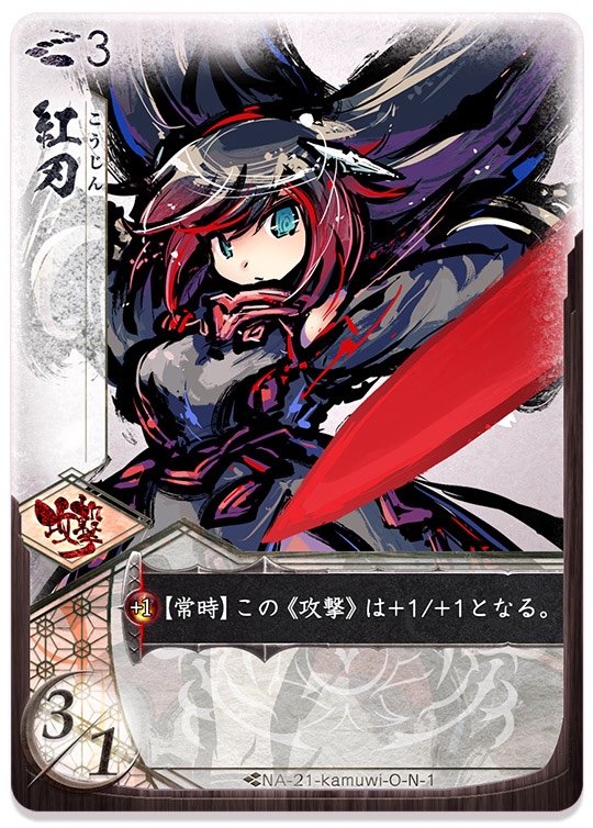 這樣的兩面性也存在カムヰ的其他卡牌中。相對於強大的進攻的紅刃,也有具強大防禦能力的切り払い(揮除)